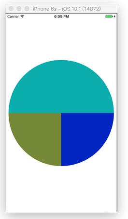 - (void)drawRect:(CGRect)rect { NSArray *dataArray = @[@25,@25,@50]; // 畫弧 CGPoint center = CGPointMake(rect.size.width * 0.5, rect.size.height * 0.5); // 半徑 CGFloat radius = rect.size.width * 0.5 - 10; CGFloat startA = 0; CGFloat angle = 0; CGFloat endA = 0; for (NSNumber *num in dataArray) { startA = endA; // 遍歷出第一個(gè)對(duì)象25,angle =25/100 *2π,即angle = π/2,所以為1/4圓, angle = num.intValue / 100.0 * M_PI * 2; // 截至角度= 開始的角度+ 遍歷出的對(duì)象所占整個(gè)圓形的角度 endA = startA + angle; // 順勢(shì)針畫貝塞爾曲線 UIBezierPath *path = [UIBezierPath bezierPathWithArcCenter:center radius:radius startAngle:startA endAngle:endA clockwise:YES]; // 設(shè)置隨機(jī)顏色 [[self randomColor] set]; // 添加一根線到圓心 [path addLineToPoint:center]; // 填充路徑 [path fill]; // 描邊路徑// [path stroke]; } } /** 生成隨機(jī)顏色 @return UIColor */-(UIColor *)randomColor{ CGFloat redLevel = rand() / (float) RAND_MAX; CGFloat greenLevel = rand() / (float) RAND_MAX; CGFloat blueLevel = rand() / (float) RAND_MAX; return [UIColor colorWithRed: redLevel green: greenLevel blue: blueLevel alpha: 1.0];}
