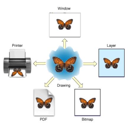 相同的一套繪圖序列,指定不同的Graphics Context,就可將相同的圖像繪制到不同的目標(biāo)上。