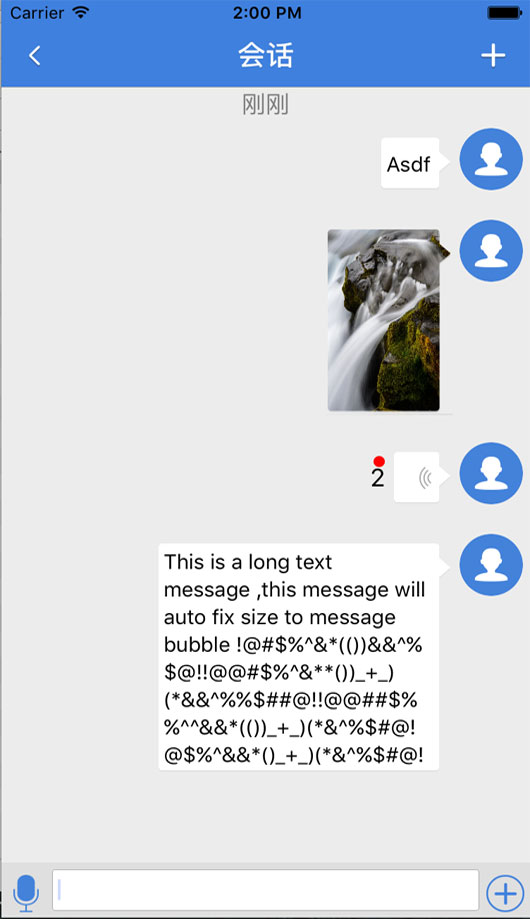 該篇文章主要介紹一個實現聊天界面的思路過程,源碼可以在 源碼鏈接 獲得,該工程實現聊天的基本功能,功能還不夠完善,歡迎大家提PR,效果圖如下所示