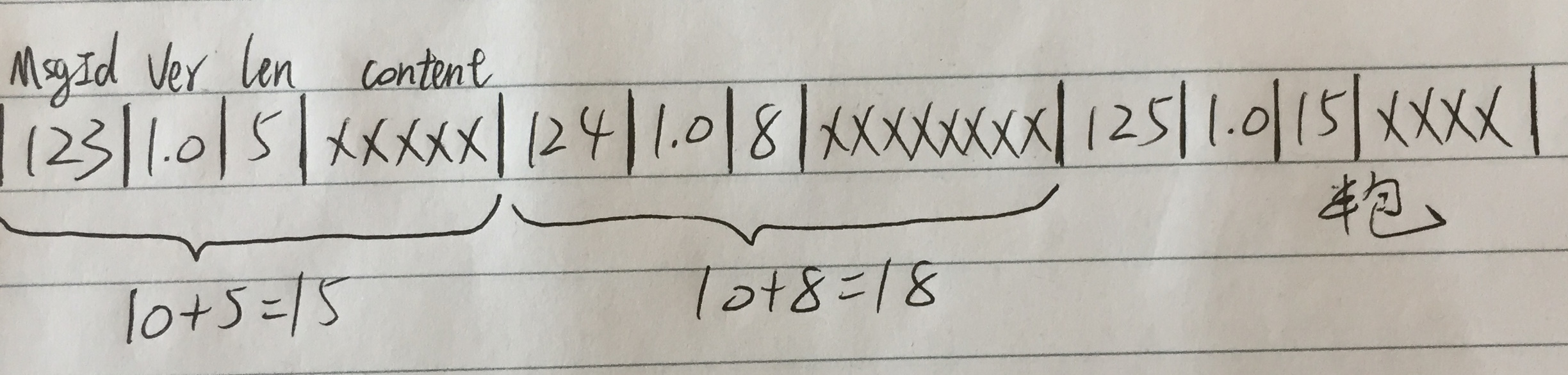 (當然也可以把數據設計成定長數據,但這樣不夠靈活;或者用/n,/r這類字符作為數據劃分依據,但不直觀、不明確,同時也不靈活)