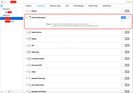 Xcode8增加了一項很重要的功能:為推送增加了entitlements 文件簽名。所以,如果你的應用是支持推送的,那一定要記得打開這個entitlements文件簽名的開關!否則APP在啟動注冊推送服務的時候就報簽名錯誤了,Push消息也就不可能接收的到。