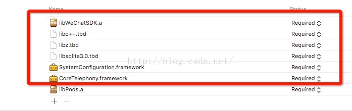 2. 把下載下來的sdk中的.h文件與靜態庫全部拖入工程。