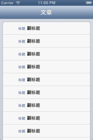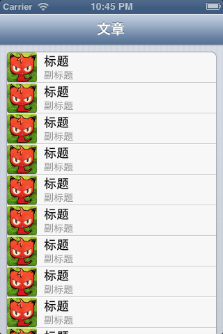 Subtitle樣式:左邊一個顯示圖片的imageView,上邊一個主標題textLabel,一個副標題detailTextLabel。主標題字體大且加黑,副標題字體小在主標題下邊。