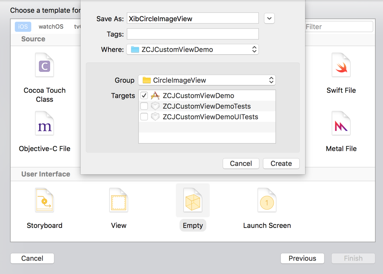 在創(chuàng)建自定義控件時(shí),主要有兩種實(shí)現(xiàn)方式,分別是純代碼以及xib。接下來我們用這兩種方式分別演示一下創(chuàng)建自定義控件的步驟。