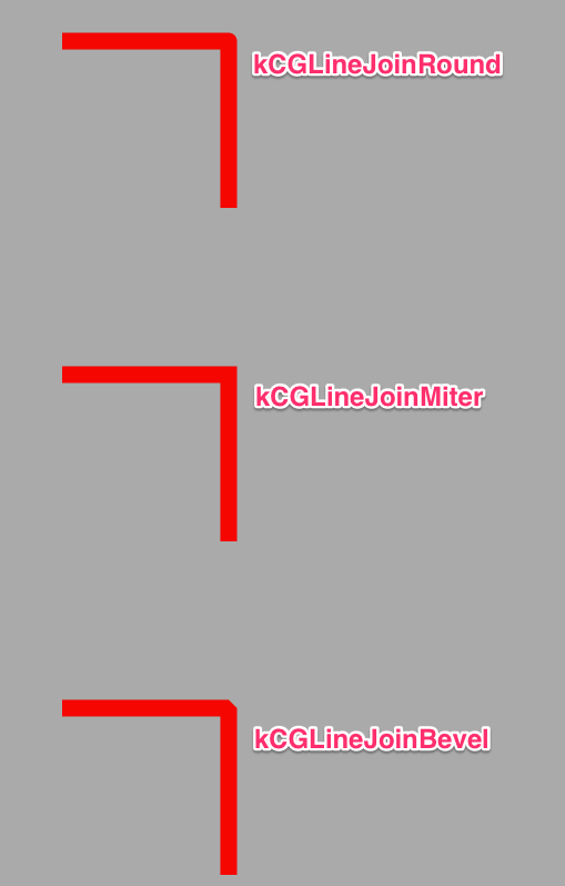 8.miterLimit:最大斜接長度(只有在使用kCGLineJoinMiter是才有效), 邊角的角度越小,斜接長度就會越大