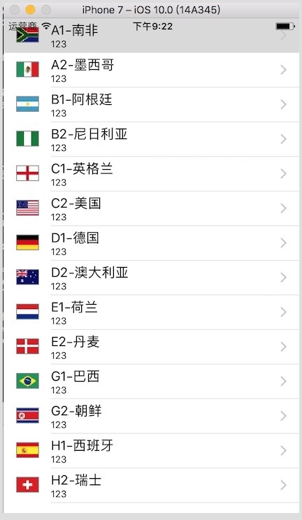 import UIKitclass ViewController: UITableViewController { //全部數據 var listItems: NSArray! override func viewDidLoad() { super.viewDidLoad() //讀取資源文件數據 let listPath = Bundle.main.path(forResource: "team", ofType: "plist") self.listItems = NSArray(contentsOfFile: listPath!) } override func didReceiveMemoryWarning() { super.didReceiveMemoryWarning() // Dispose of any resources that can be recreated. } //返回列表每行的視圖 func tableView(_ tableView: UITableView, cellForRowAt indexPath: IndexPath) -> UITableViewCell { let cell = tableView.dequeueReusableCell(withIdentifier: "CustomId", for: indexPath) let row = indexPath.row let rowDict = self.listItems[row] as! NSDictionary cell.textLabel?.text = rowDict["name"] as? String cell.detailTextLabel?.text = "123" let imagePath = String(format: "%@.png", rowDict["image"] as! String) cell.imageView?.image = UIImage(named: imagePath) cell.accessoryType = UITableViewCellAccessoryType.disclosureIndicator return cell } //返回條目數目 func tableView(_ tableView: UITableView, numberOfRowsInSection section: Int) -> Int { return self.listItems.count } //響應條目點擊事件 func tableView(_ tableView: UITableView, didSelectRowAt indexPath: IndexPath) { print("點擊事件") } }