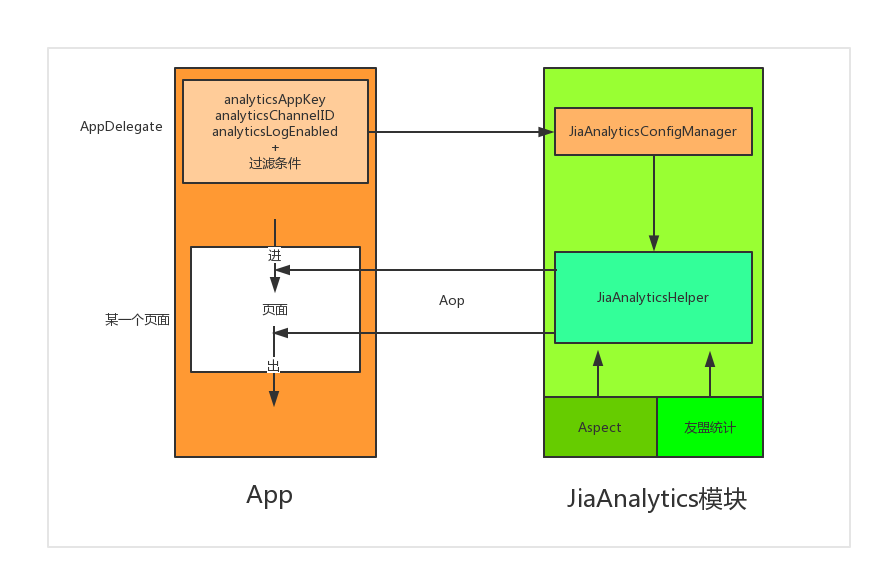 JiaAnalytics模塊是在友盟統(tǒng)計(jì)SDK跟Aspect相結(jié)合基礎(chǔ)上完成,對(duì)于頁面的進(jìn)出統(tǒng)計(jì)采用Aop切面方式進(jìn)行,把原本應(yīng)該在每個(gè)頁面生命周期的統(tǒng)計(jì)代碼移除,App運(yùn)用只要簡單配置友盟相對(duì)應(yīng)的信息,也可以設(shè)置要統(tǒng)計(jì)頁面的過濾條件,目前已經(jīng)有三種如要統(tǒng)計(jì)的開頭頁面的前綴字符串?dāng)?shù)組、要統(tǒng)計(jì)的頁面名稱字符串?dāng)?shù)組、不統(tǒng)計(jì)的頁面名稱字符串?dāng)?shù)組;可以結(jié)合使用,達(dá)到精確統(tǒng)計(jì)頁面的目的;而且把統(tǒng)計(jì)的代碼放在異步線程進(jìn)行,不會(huì)影響主線程的響應(yīng);