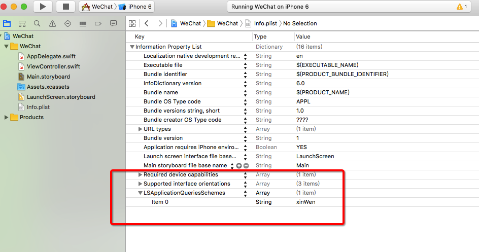 一個程序要跳轉到(打開)另外一個程序,需要將另外一個程序的Scheme添加到自己的應用程序白名單中(在info.plist中配置:LSApplicationQueriesSchemes,類型為數組,在數組中添加相應的Scheme)->ios9.0開始