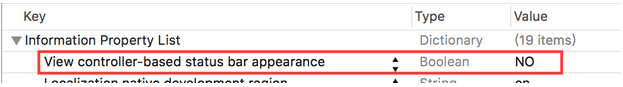 這個(gè)注釋提示,蘋果提示開發(fā)者如果使用的是系統(tǒng)基礎(chǔ)的狀態(tài)欄樣式你的這些設(shè)置是不生效的,在接下來要介紹的通過Info.plist隱藏狀態(tài)欄同樣要注意這件事。