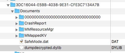 DYLD_INSERT_LIBRARIES=dumpdecrypted.dylib /var/mobile/Applications/3DC16044-E5BB-4038-9E31-CFE3C7134A7B/WeChat.app/WeChat