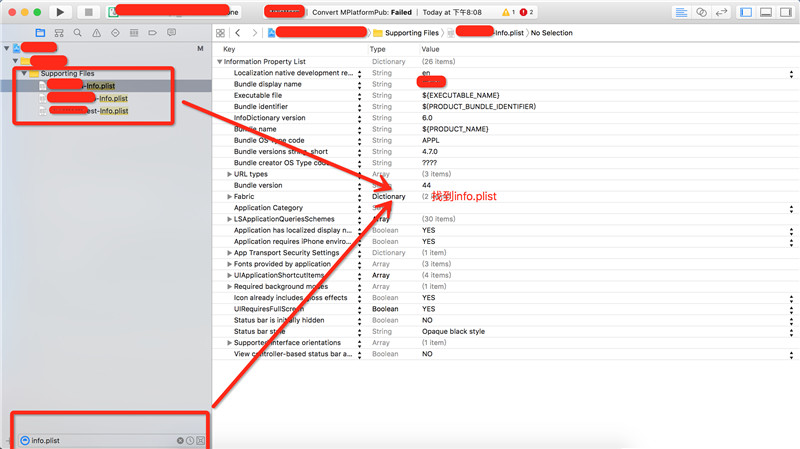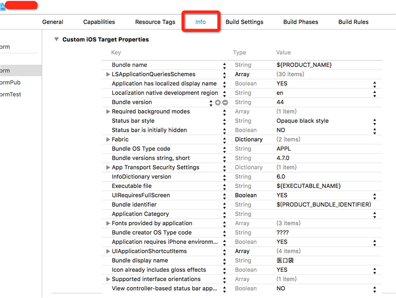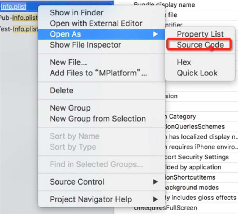 也可以找到info.plist文件,然后使用SourceCode方式打開: