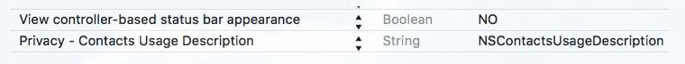 雖然現在還沒有iOS10系統的手機,但是我用模擬器試了下,親測如果我想喚起通訊錄但是沒有配置NSContactsUsageDescription,剛啟動時不會崩潰,但是在喚起操作發生時會直接崩潰。 在info.plist設置之后就可以正常使用了。