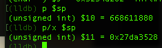 我們還可以將一個地址所存放的值進(jìn)行打印,下方這個命令就是輸出了$sp指針?biāo)傅牡刂诽幩娣诺闹担?/p>