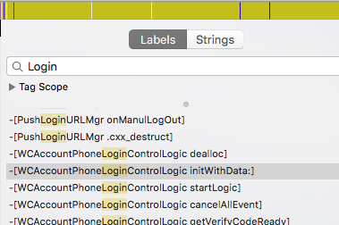 要給上述右邊頁面添加斷點首先得知道上面“手機號登錄”視圖控制器的內(nèi)存地址,然后才可以使用LLDB添加斷點。那么尋找上述視圖控制器的內(nèi)存地址的任務(wù)就交給了我們的Hopper來做了。在Hopper中我們搜索“Login”,然后會篩選出好的帶有Login關(guān)鍵字的ViewController,然后我們在篩選的結(jié)果中再次尋找可疑目標(biāo)對象。然后我們找到了一個名為“WCAccountPhoneLoginControlLogic”(我們可以翻譯一下英文,大概意思就是“微信手機賬號登錄控制邏輯”)的類,從這個類的名字中我們不難推斷出該類極有可能就是我們要尋找的“手機賬號登錄”頁面。