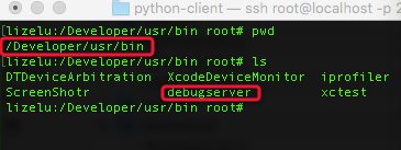 進(jìn)入到到Mac中debugserver所在的目錄下執(zhí)行上述命令即可,-thin后方填寫你的測試機相應(yīng)的ARM架構(gòu)即可,因為我的測試機是iPhone 6 Plus, 是arm64的架構(gòu),所以此處填的參數(shù)是arm64, 如果你的是iPhone5的設(shè)備,那么就是armv7s了。