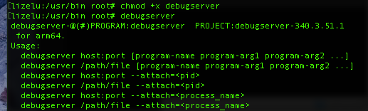 賦完權(quán)限后,你就可以使用debugserver命令來開啟debuserver了,如下所示: