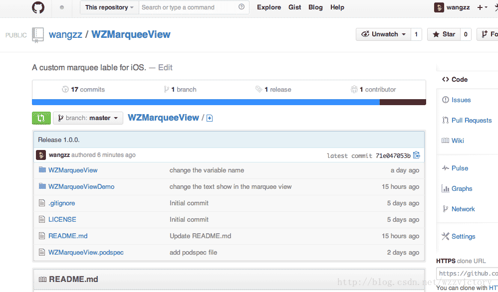 $ git add -A && git commit -m "Add WZMarqueeView podspec file"$ git push origin master