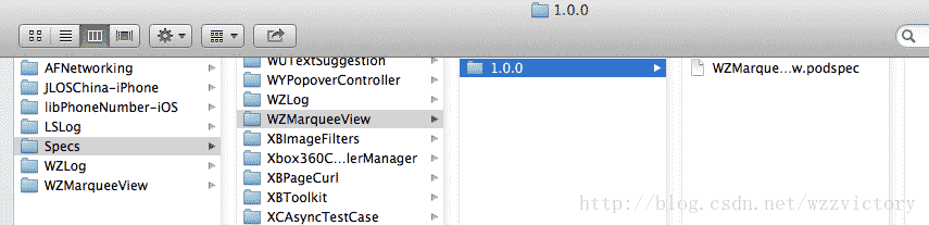 不難理解,如果以后有對WZMarqueeView類的升級,就在WZMarqueeView文件夾下建立對應版本名稱的文件夾,用于保存對應版本的podspec文件即可。