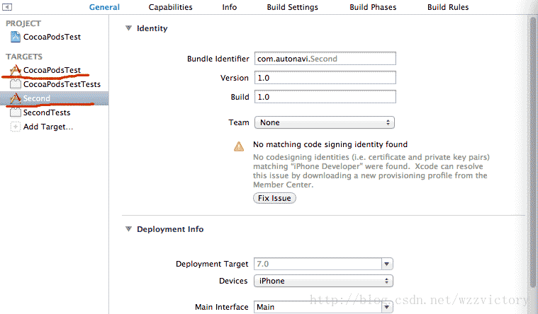 如果想在一個Podfile中同時描述project中的多個target,根據需求的不同,可以有不同的實現方式。為了說明問題,在原來的工程中再創建一個名稱為Second的target,現在的project中包含的target有: