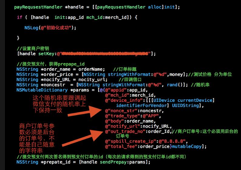 4.2得到預(yù)支付訂單,那么就可以調(diào)微信支付的客服端(4.2和4.1代碼是連續(xù)的)