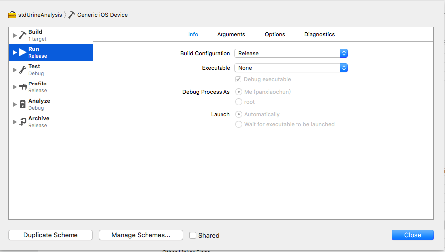 4.找到Edit scheme在run――>info下把build configure的值由默認值Debug 改為Release