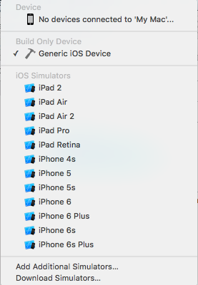 5.選擇要編譯的硬件環境:分別在Generic IOS Device和 iPhone 6s Plus(選擇最新的模擬器)下編譯一次,編譯完后就可以看到工程的products文件下的xxx.framework由紅色變成黑色(注意:如果只編譯了iphone 6s Plus模擬器,沒有編譯 Generic IOS Device ,那么xxx.framework還是不會變成黑色)