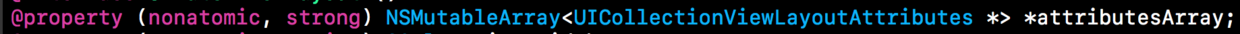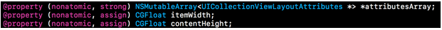 通過上邊的三個(gè)方法名我們可以大致了解需要去做什么.說一下第二個(gè)方法,需要返回一個(gè)數(shù)組,數(shù)組存放布局屬性(UICollectionViewLayoutAttributes)對(duì)象.那么我們需要寫一個(gè)屬性數(shù)組(attributesArray),將布局屬性放入這個(gè)屬性數(shù)組并返回.