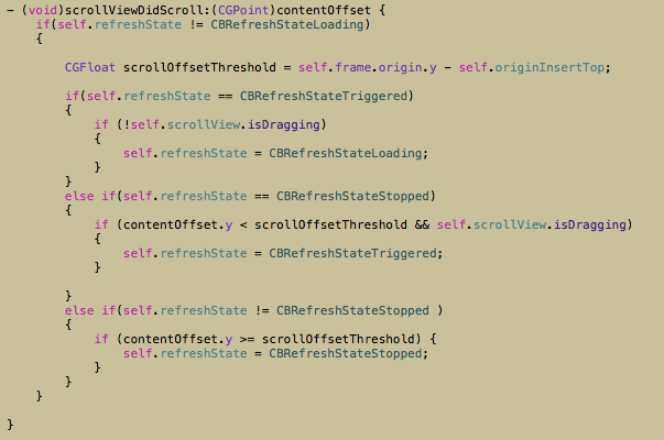 當下拉達到條件就觸發刷新,同時更改scrollview的contentInsert.top值,以使手指松開之后headerView仍然可以露出來
