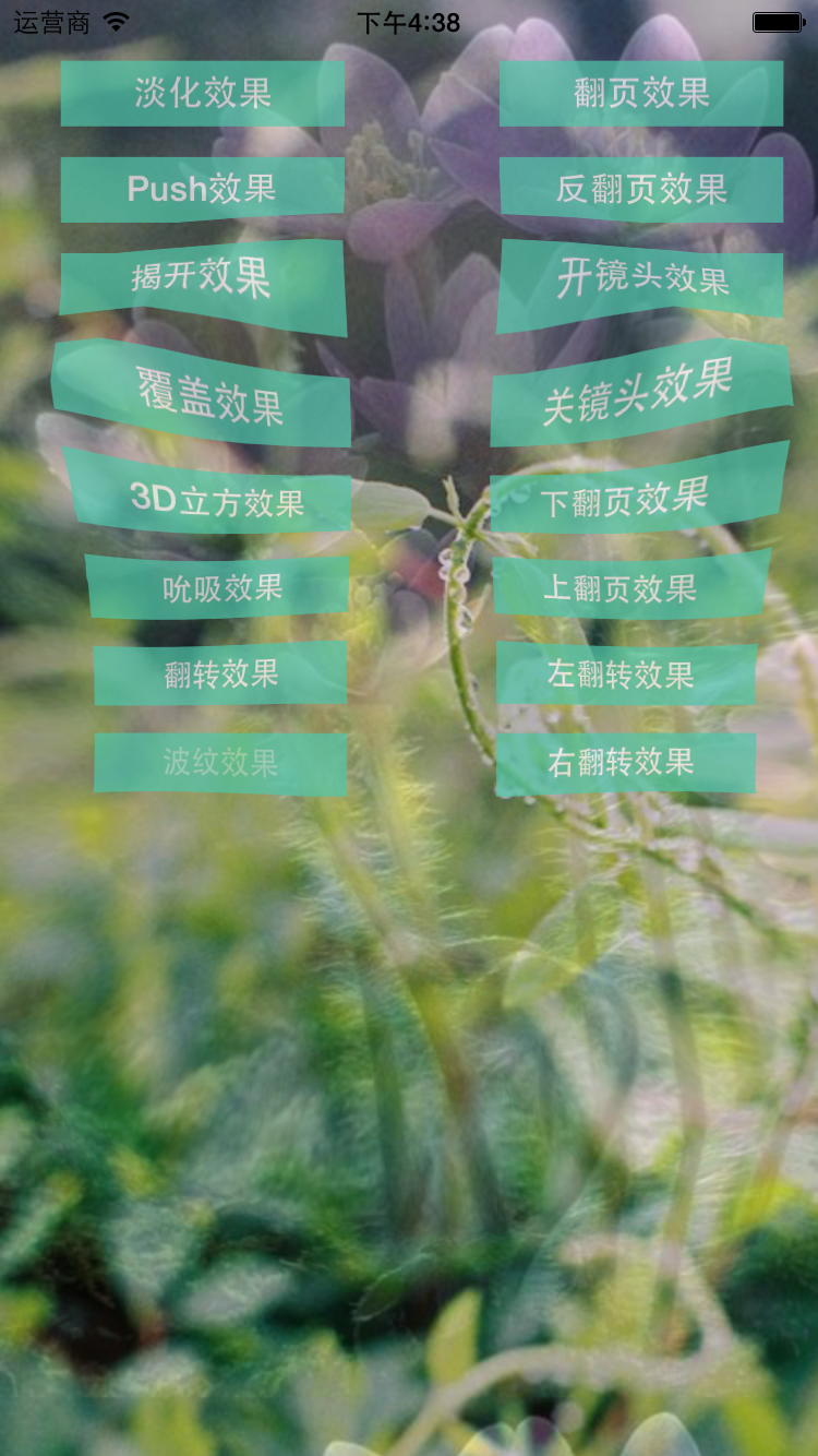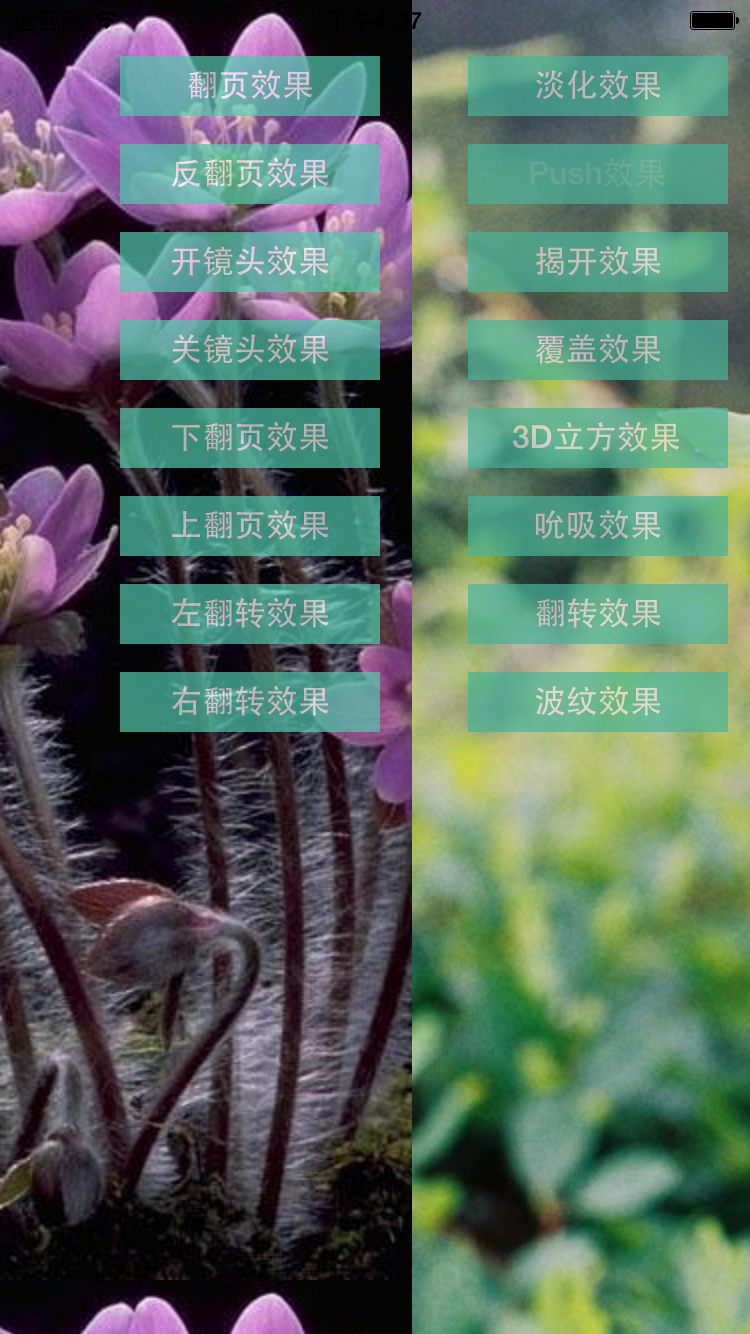 case Reveal:[self transitionWithType:kCATransitionReveal WithSubtype:subtypeString ForView:self.view];break;