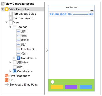 首先在storyboard上布局好控件,設置約束等等,最后的效果是這樣: