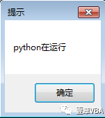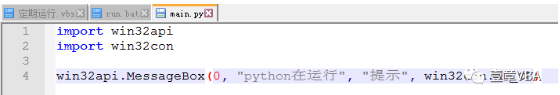 import win32apiimport win32conwin32api.MessageBox(0, "python在運行", "提示", win32con.MB_OK)