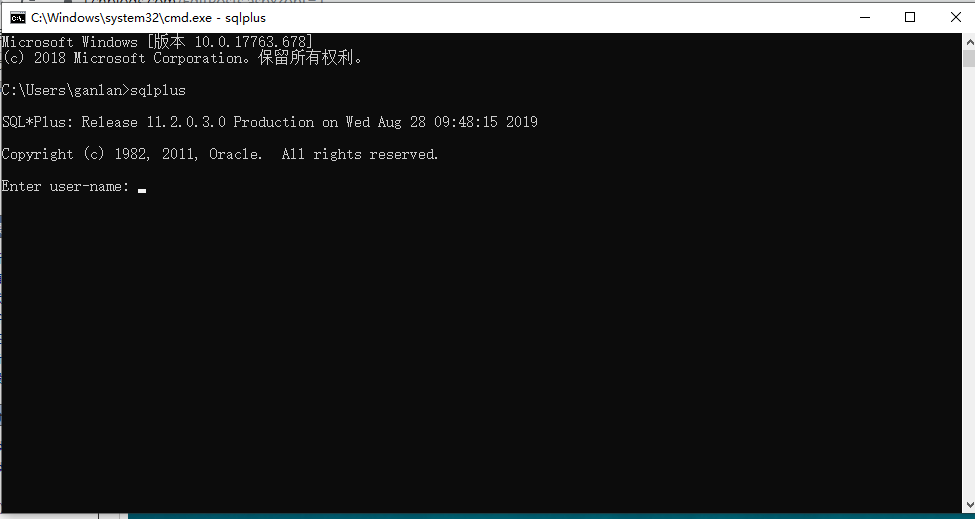 3、重新打開cmd 執(zhí)行sqlplus命令,如下圖成功: