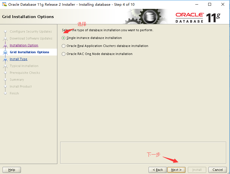 第四步,選擇數(shù)據(jù)庫(kù)安裝類型: