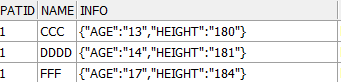 圖為TTTT表中的內容,例子為截取INFO中的AGE信息。