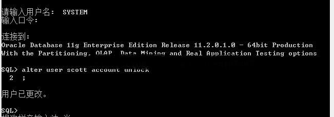 然后連接成功之后輸入:alter user scott account unlock;