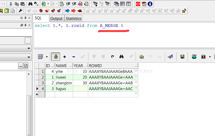 merge into A_MERGE A USING (select B.AID,B.NAME,B.YEAR from B_MERGE B) C ON(A.ID=C.AID) WHEN NOT MATCHED THEN insert(A.ID,A.NAME,A.YEAR) VALUES(C.AID,C.NAME,C.YEAR); commit;