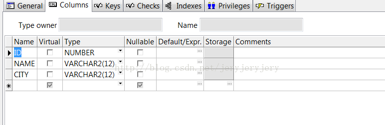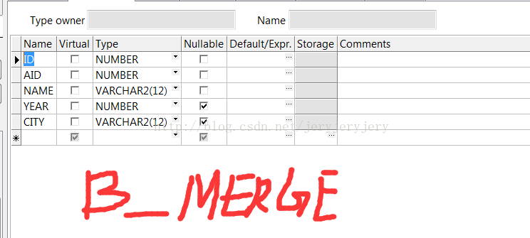 create table A_MERGE ( id NUMBER not null, name VARCHAR2(12) not null, year NUMBER ); create table B_MERGE ( id NUMBER not null, aid NUMBER not null, name VARCHAR2(12) not null, year NUMBER, city VARCHAR2(12) ); create table C_MERGE ( id NUMBER not null, name VARCHAR2(12) not null, city VARCHAR2(12) not null ); commit;
