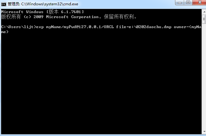 以上語句是將 用戶名為 myName的數據庫導出,在E盤生成文件 0202daochu,