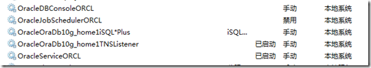 OracleServiceORCL,OracleOraDb10g_home1TNSListener都需要開啟,前者是主服務,后者是監聽服務。