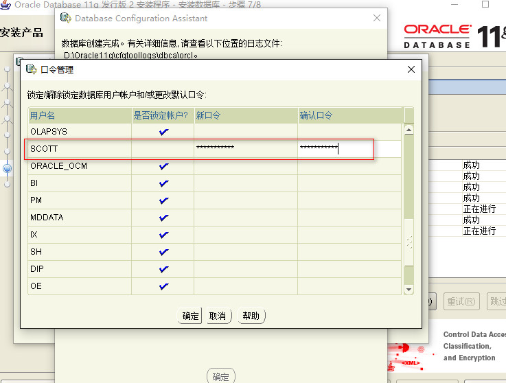 9) 默認(rèn)sys和system用戶可用,可以將scott用戶解除鎖定,并設(shè)置密碼