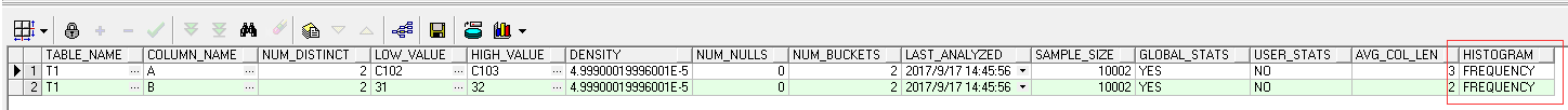 如果對目標收集了直方圖,則意味著CBO不再認為目標列上的數據是均勻分布的。CBO會用該列上的直方圖的統計信息計算返回結果集的cardinality.