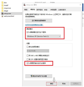 2、 解壓完成后設置文件兼容性: 進入 database文件夾 右鍵點擊 setup.exe 屬性-兼容性