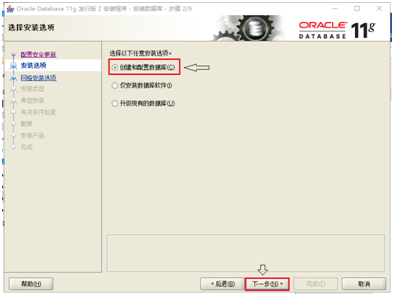 b) 選擇安裝選項 這里選 創建和配置數據庫