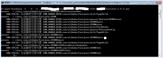 --向數據庫導入json相關jar包loadjava -r -f -u scott/tiger@xxx.xxx.xxx.xxx:1521/orcl json.jar--刪除指定jar#dropjava -u scott/tiger@xxx.xxx.xxx.xxx:1521/orcl json.jar