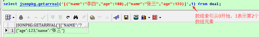 3、在PL/SQL中處理json數組時,由于json元素是無序且可以重復的,因此我們需要對數組成員進行索引并能夠獲取數組長度才可以對其循環處理。