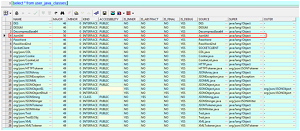 create or replace and compile java source named "JsonUtil" asimport org.json.JSONArray;import org.json.JSONException;import org.json.JSONObject;import java.lang.Integer;public class JsonUtil { //取json串單個節點值 public static String getValue(String jsonStr,String nodeName){ String nodeValue=""; try { if(jsonStr==null||!jsonStr.startsWith("{")||!jsonStr.endsWith("}")){ nodeValue=""; }else{ JSONObject obj =new JSONObject(jsonStr); nodeValue = obj.getString(nodeName); } } catch (JSONException e) { nodeValue=""; } return nodeValue; } //取json數組長度便于循環處理 public static Integer getArrayLength(String jsonArrayStr){ Integer length=0; try { if(jsonArrayStr==null||!jsonArrayStr.startsWith("[")||!jsonArrayStr.endsWith("]")){ length=0; }else{ JSONArray jsonArr = new JSONArray(jsonArrayStr); length=jsonArr.length(); } } catch (JSONException e) { length=0; } return length; } //取json數組第index個元素 public static String getArrayValue(String jsonStr,Integer index){ String nodeValue=""; try { if(jsonStr==null||!jsonStr.startsWith("[")||!jsonStr.endsWith("]")){ nodeValue=""; }else{ JSONArray jsonArr = new JSONArray(jsonStr); nodeValue=jsonArr.getString(index); } } catch (JSONException e) { nodeValue=""; } return nodeValue; }}創建成功后再次查詢可以看到對應的class文件: