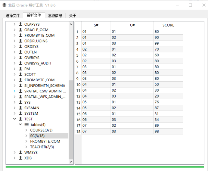 4 使用oracle解析工具,解析所有數據文件中的數據記錄,按用戶導入到新的數據庫中
