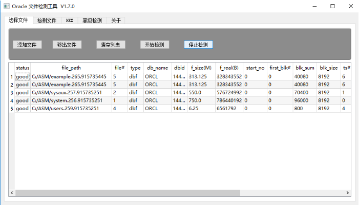 3 使用oracle文件檢測工具對ASM磁盤組中的數據庫文件進行檢測