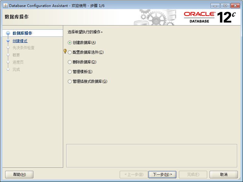 win+r進入命令臺,直接輸入dbca,進入到如圖畫面: