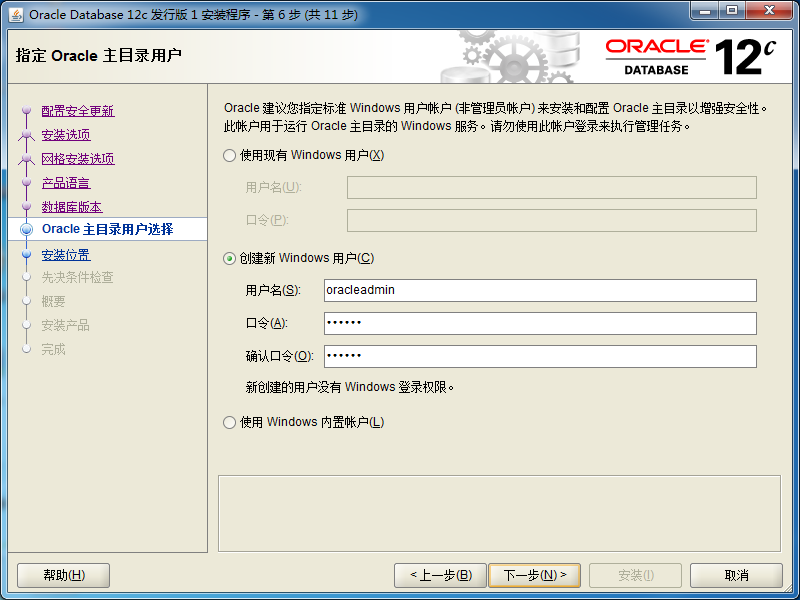 之前步驟大都是下一步:到這里建議新建一個用戶用來操作oracle數(shù)據(jù)庫。(也可以在電腦里面新建一個新的用戶)